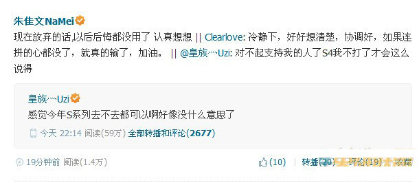 众业内人士对Uzi宣布退赛的评论: